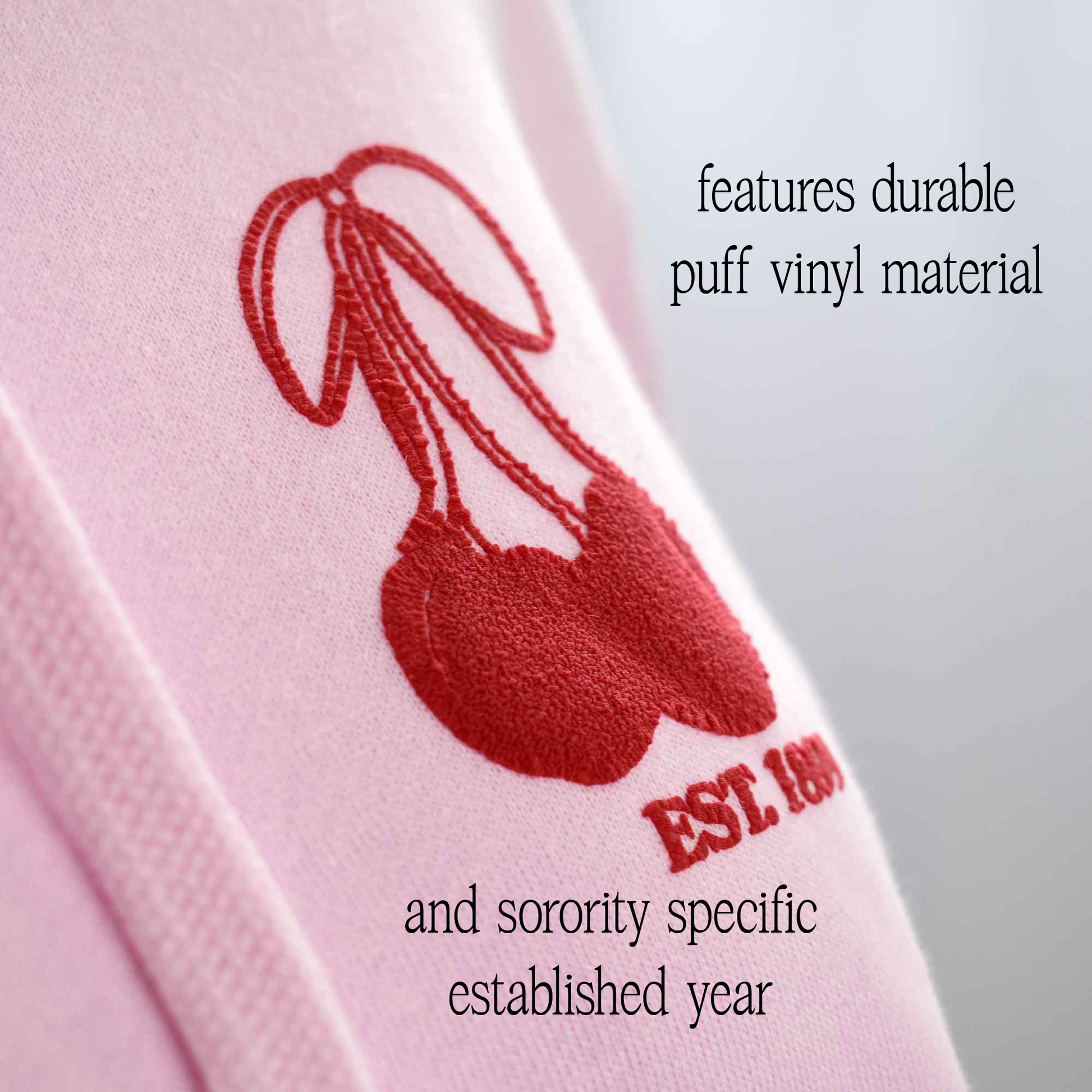 Show your Alpha Chi Omega pride with our officially licensed hooded sweatshirt, featuring our two-sided puff print bowtied cherries design.