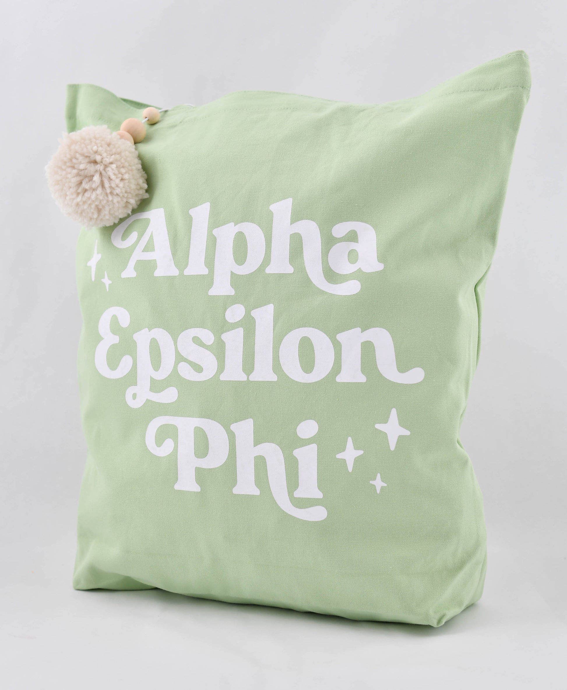 Alpha Epsilon Phi Retro Pom Pom Tote Bag