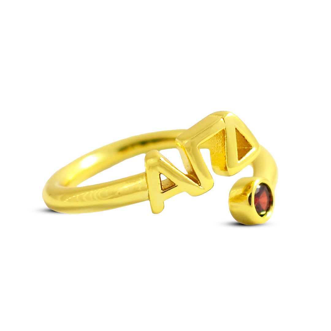 Alpha Gamma Delta Ring- Gold Plated with Greek Letters and CZ Gemstone