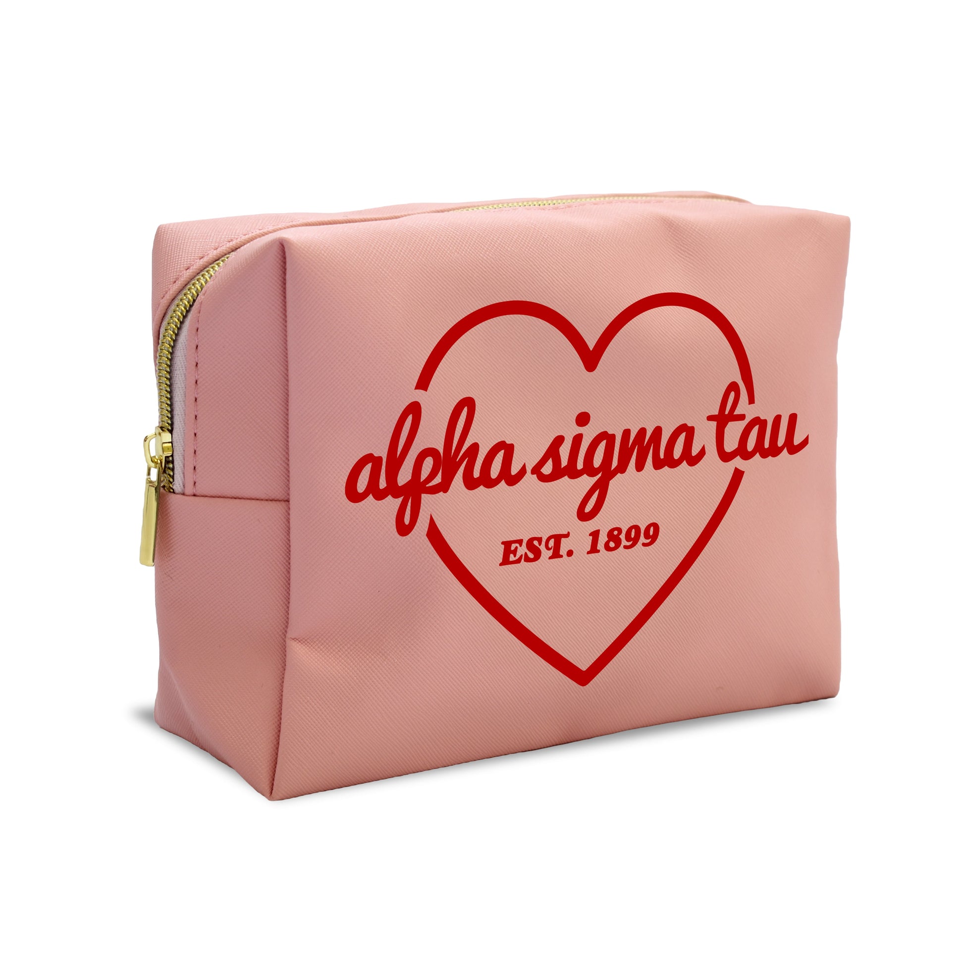 Alpha Sigma Tau Pink w/Red Heart Makeup Bag