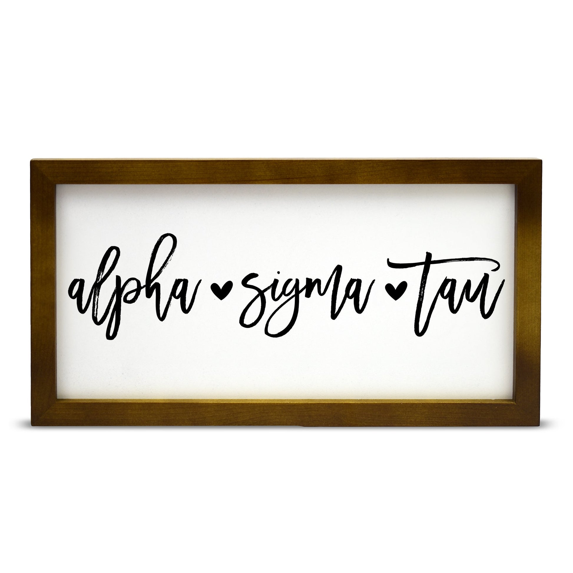 Add Sorority Spirit to your décor with our Sorority Script Large Wall Art! Each wooden sign features a brushstroke script with heart detailing on canvas and bordered with a wooden frame. A great item for yourself or to give as a gift, our wooden sign makes the perfect statement piece for your dorm or sorority house!