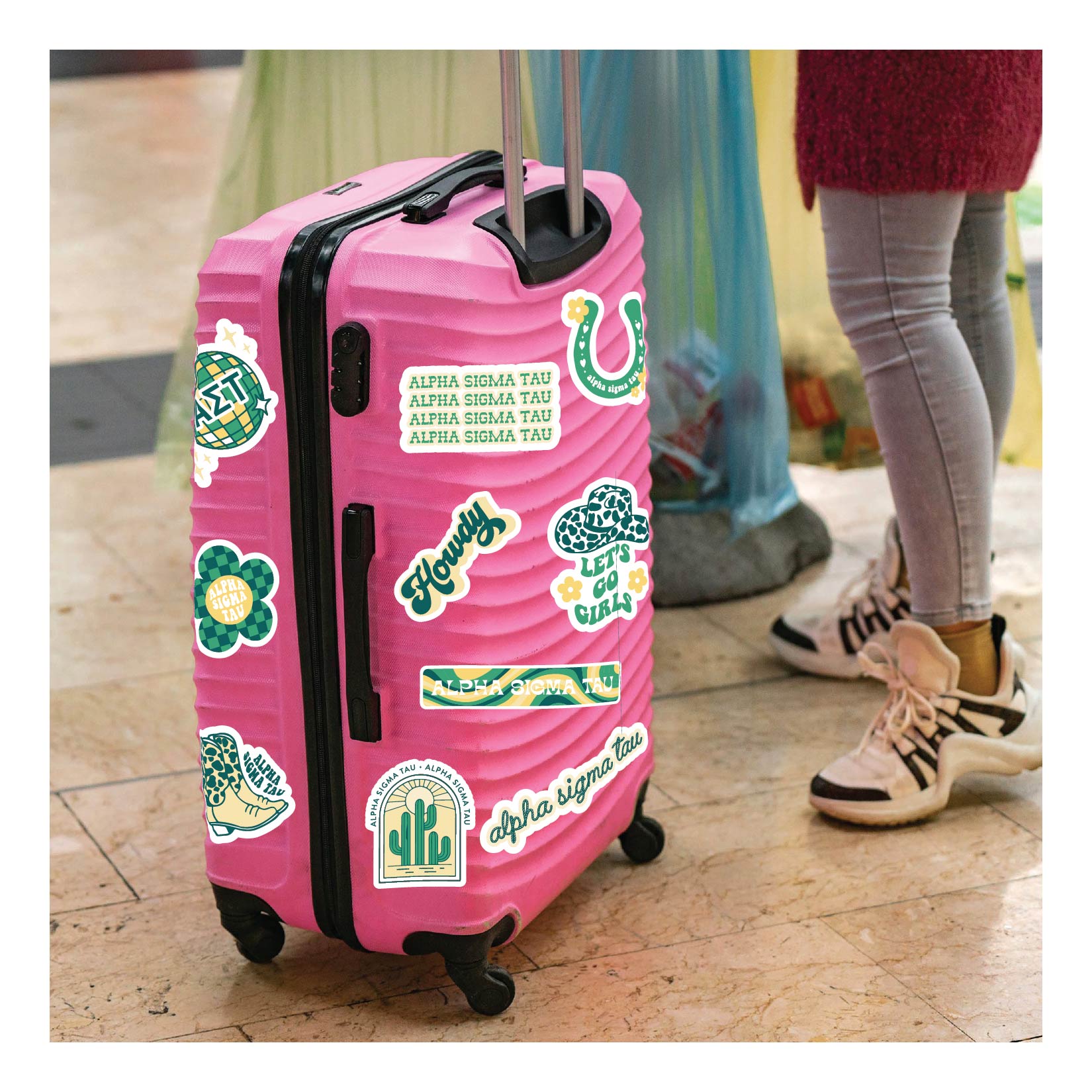 Alpha Sigma Tau Sticker Sheet - Western Disco Design