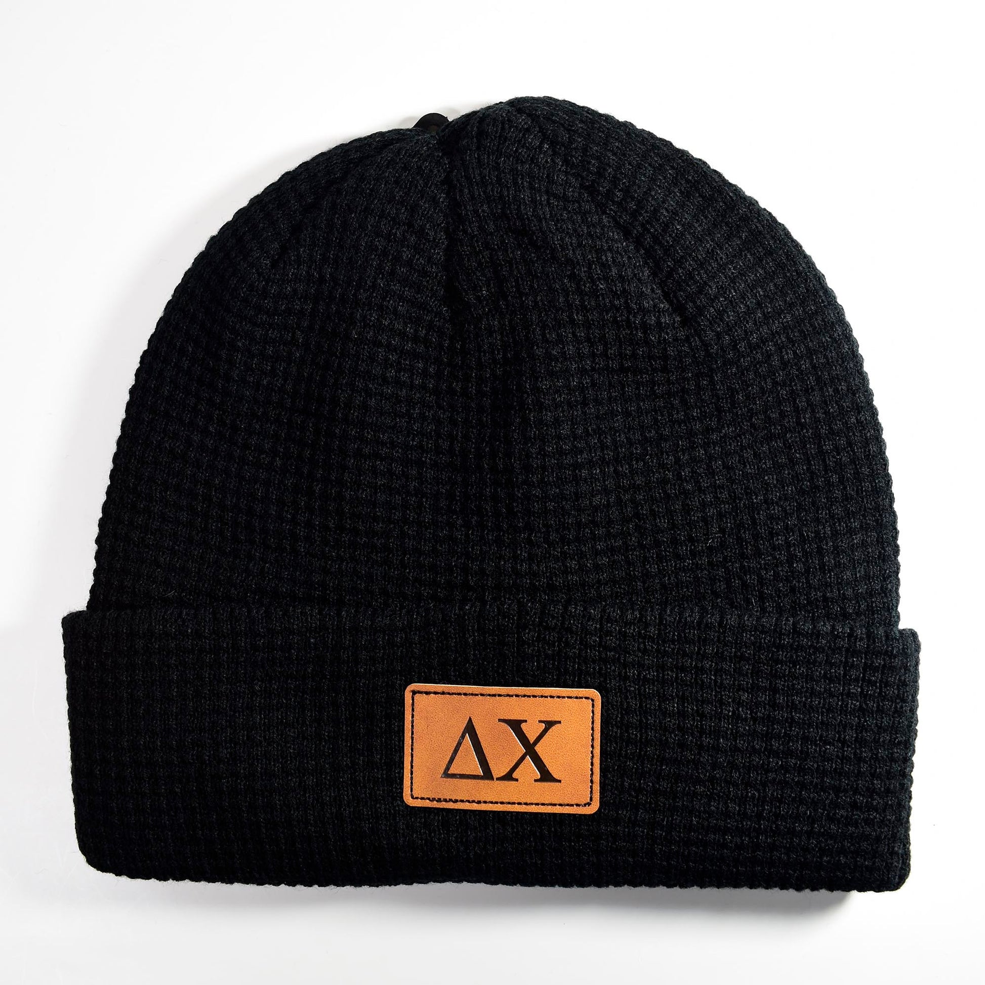 Delta Chi Fraternity Beanie Hat - Black Winter Hat w/ Greek Letters Patch