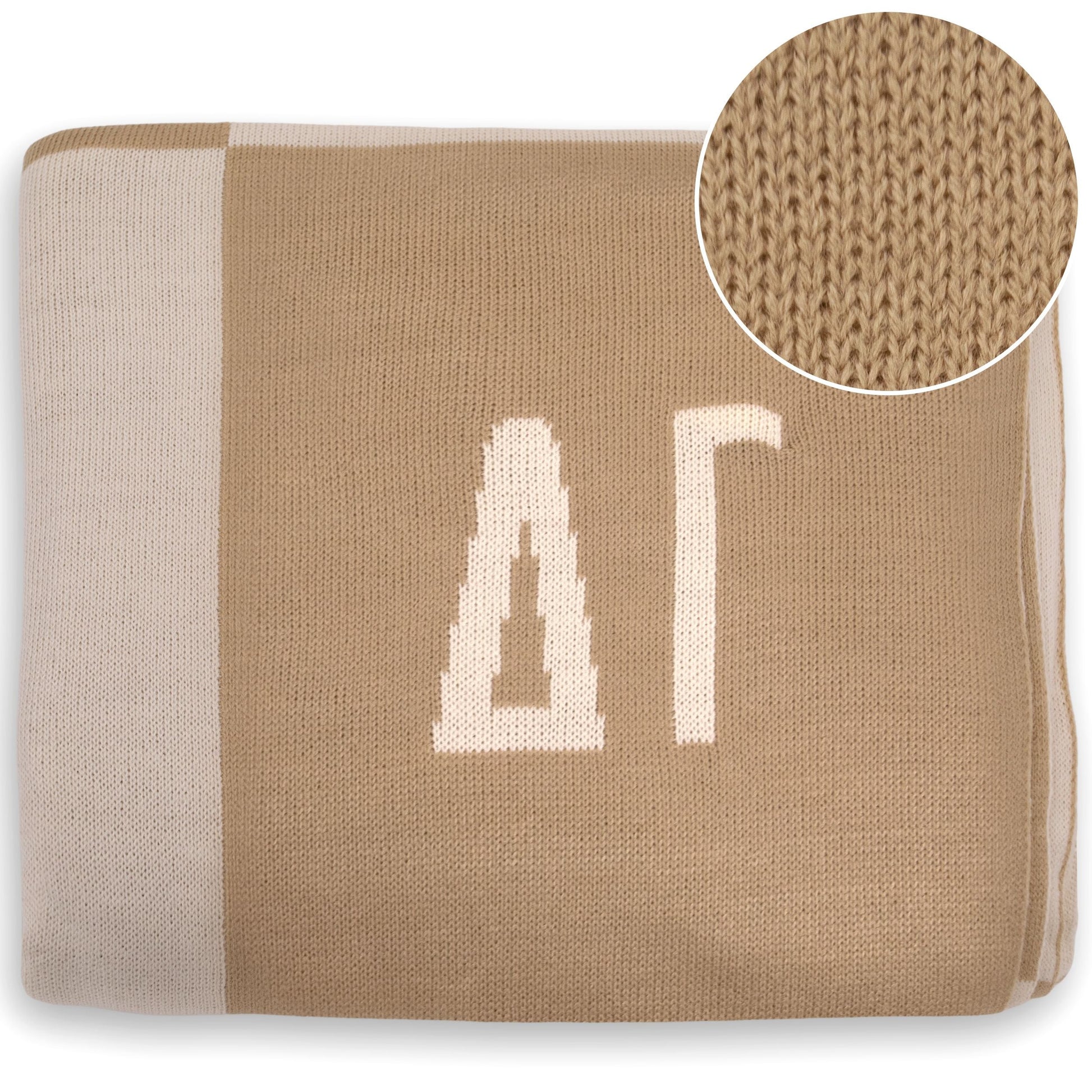 Snuggle up in style and showcase your Delta Gamma sisterhood with our irresistibly soft and lightweight biscotti and pearl ivory throw blanket.