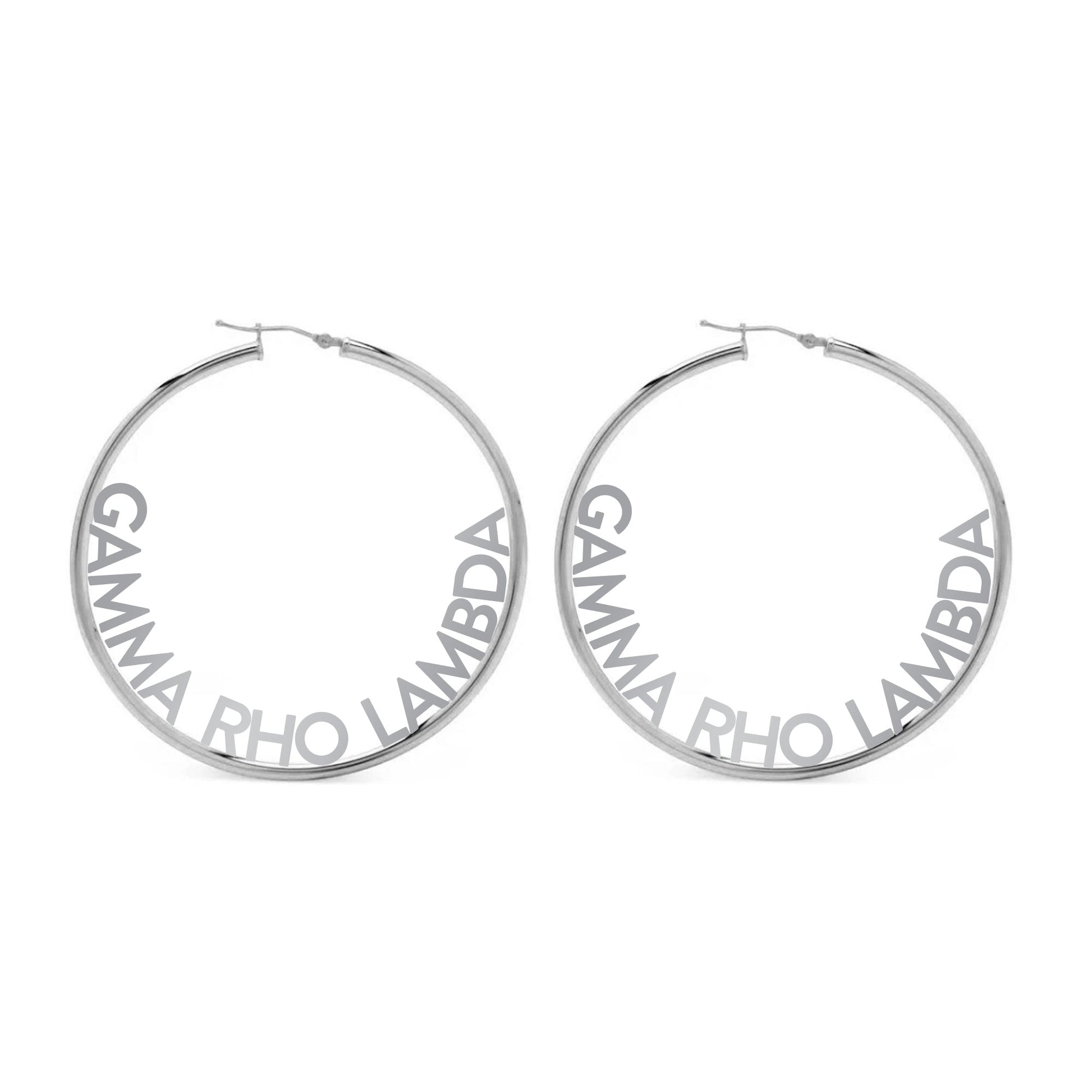 Gamma Rho Lambda Silver Hoop Earrings- Name Design