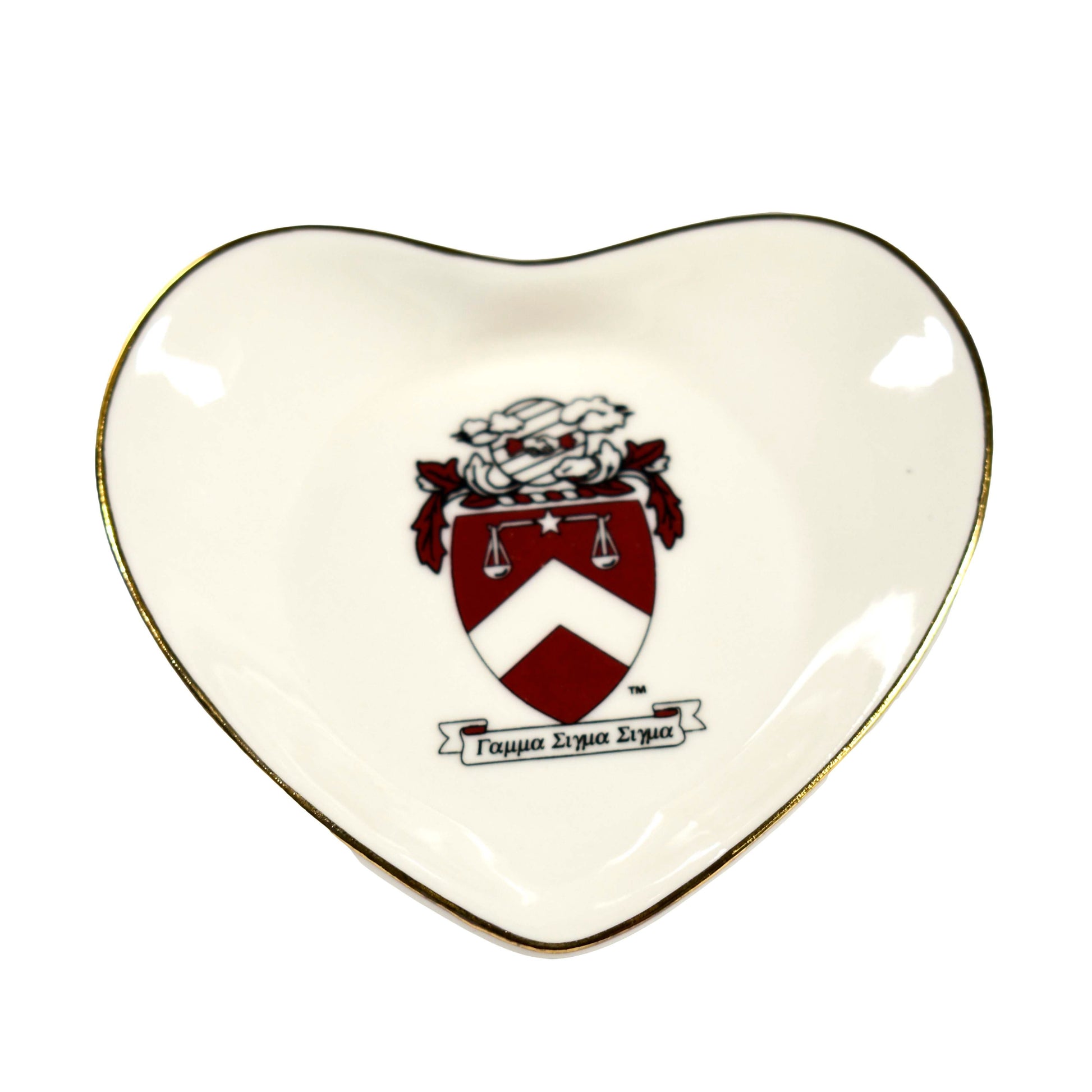Our Gamma Sigma Sigma ceramic ring dish is the definition of chic with its high gloss finish and sorority name, heart and edge in gold. Great for rings, jewelry, keys or trinkets. Perfect for home or office!