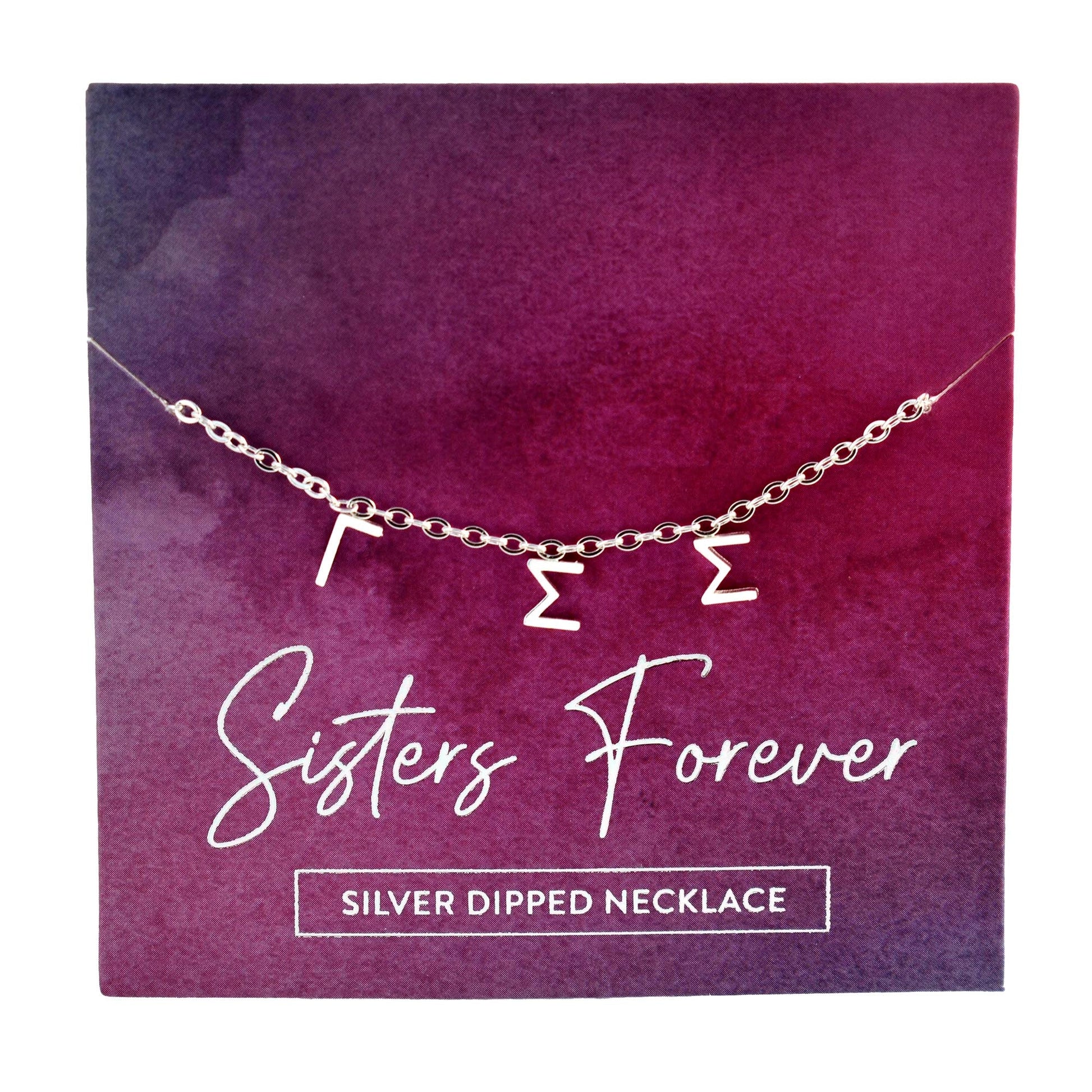 The perfect gift of Sisterhood! Our Greek Letters necklace features your sorority letters dipped in silver! Perfect for a bid day gift, big little gift or a treat for yourself!