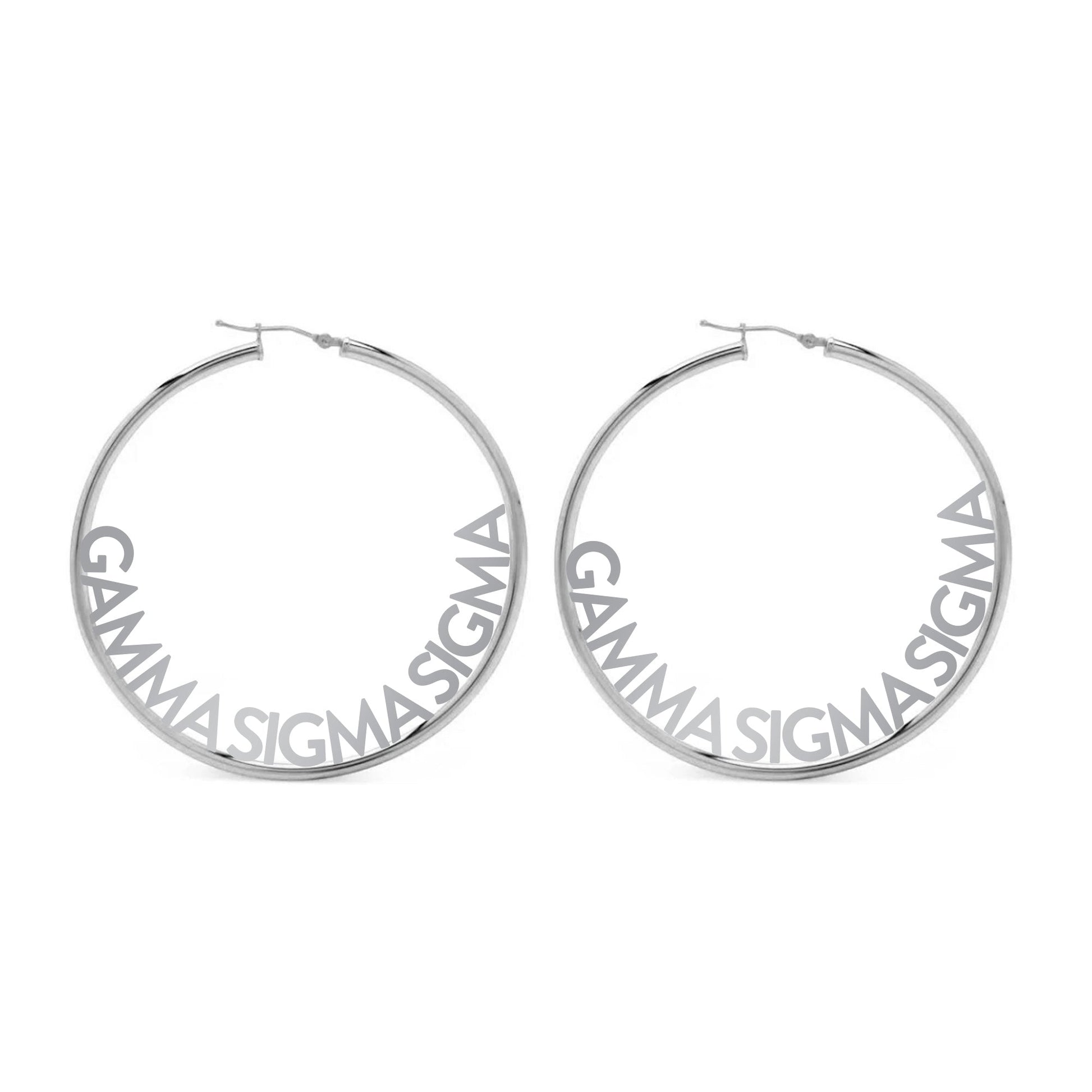 Gamma Sigma Sigma Silver Hoop Earrings- Name Design