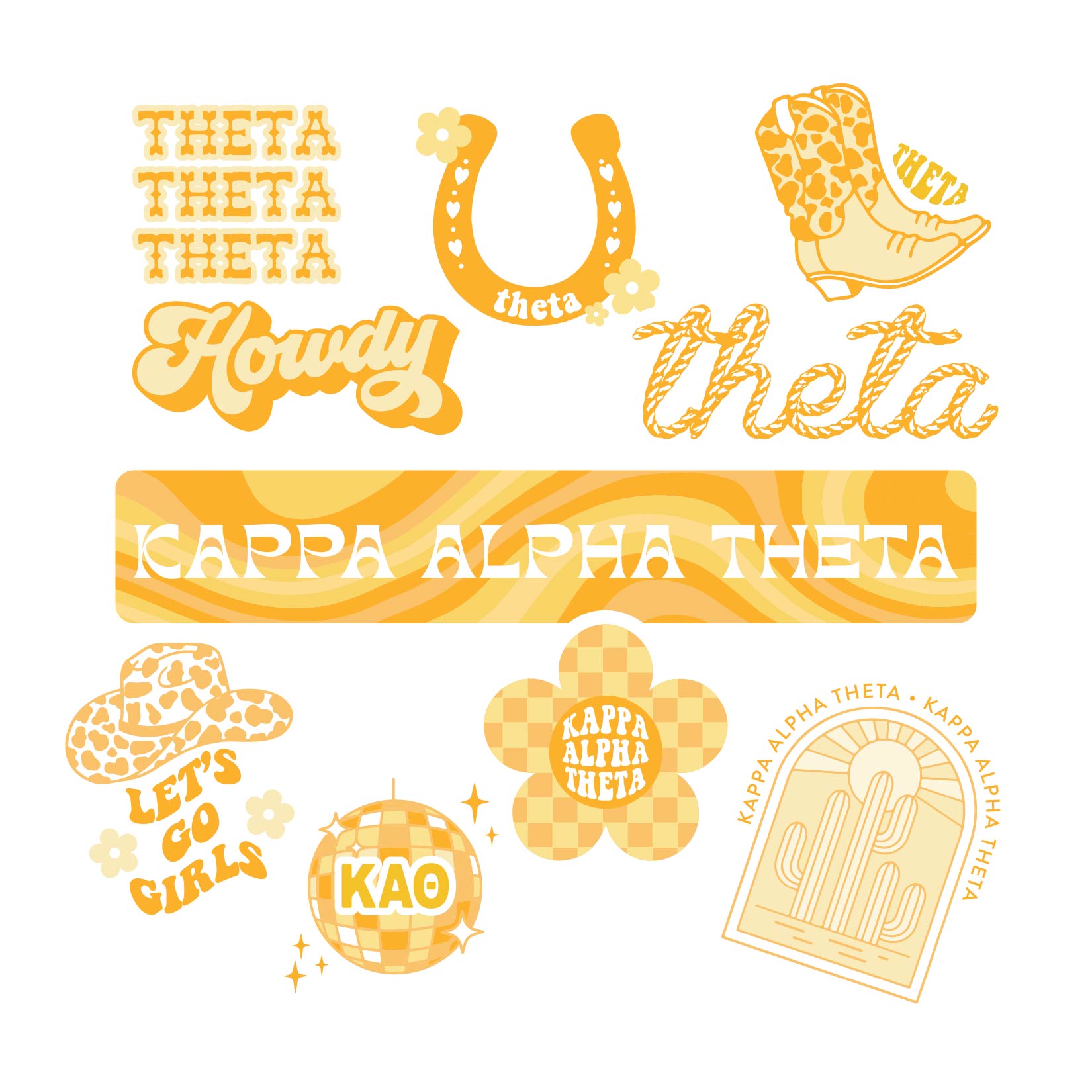 Kappa Alpha Theta Sticker Sheet - Western Disco Design