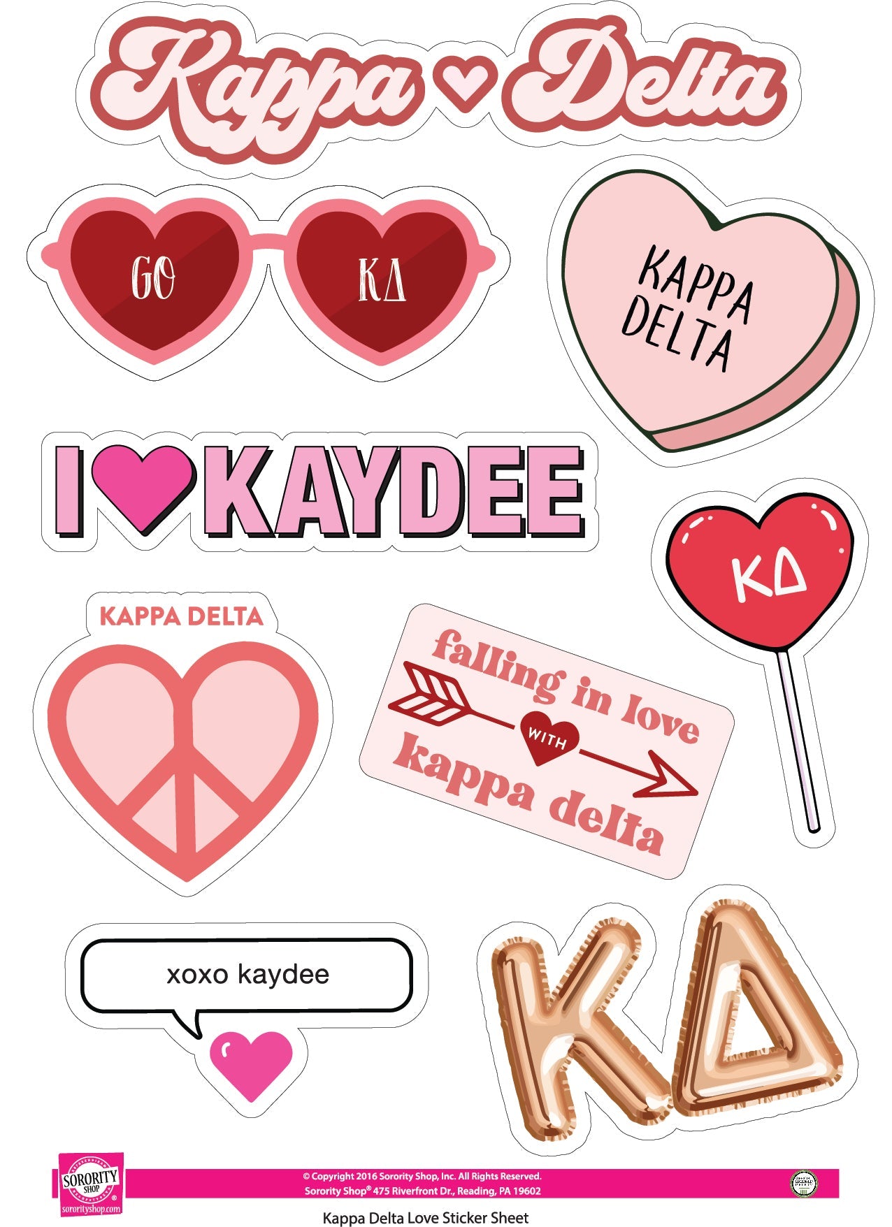 Celebrate your LOVE for your sisterhood with these high quality “Love Theme” stickers! Each sheet contains 9 stickers unique to your sorority. Printed on sturdy vinyl, they are easily removed or repositioned leaving NO STICKY RESIDUE! These stickers are the perfect way to show your sorority spirit - display them on a notebook, computer, tumbler or almost any clean dry surface; the possibilities are endless! Our officially licensed stickers make great gifts for sisters and are great to stock up on for special events or rush week.