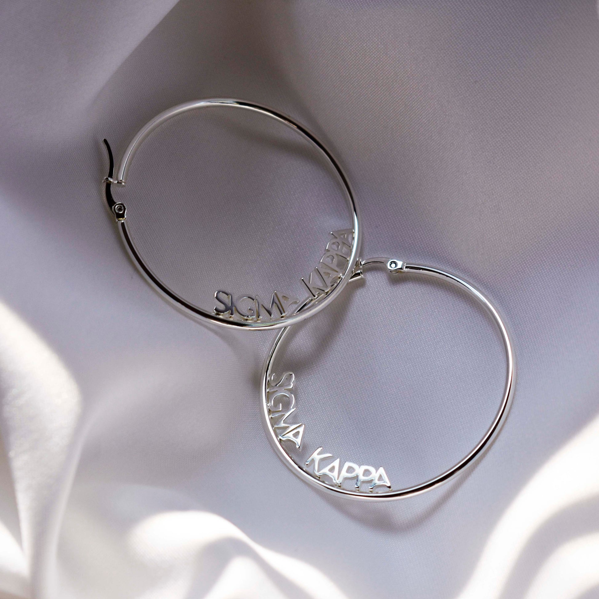 Sorority shop is dedicated to providing high-quality Greek sorority gifts. Show your support to the sisterhood by wearing our fabulous earrings! We all enjoy wearing jewelry to class, parties, work, and other places. So, what's better than having your sorority's name emblazoned on it? Buy this set of hoops for yourself or gift it to your sorority sisters on bid day, big little, or birthdays. Showcase your association with the fantastic silver-plated earrings. The perfect souvenir for you and other members is right here.