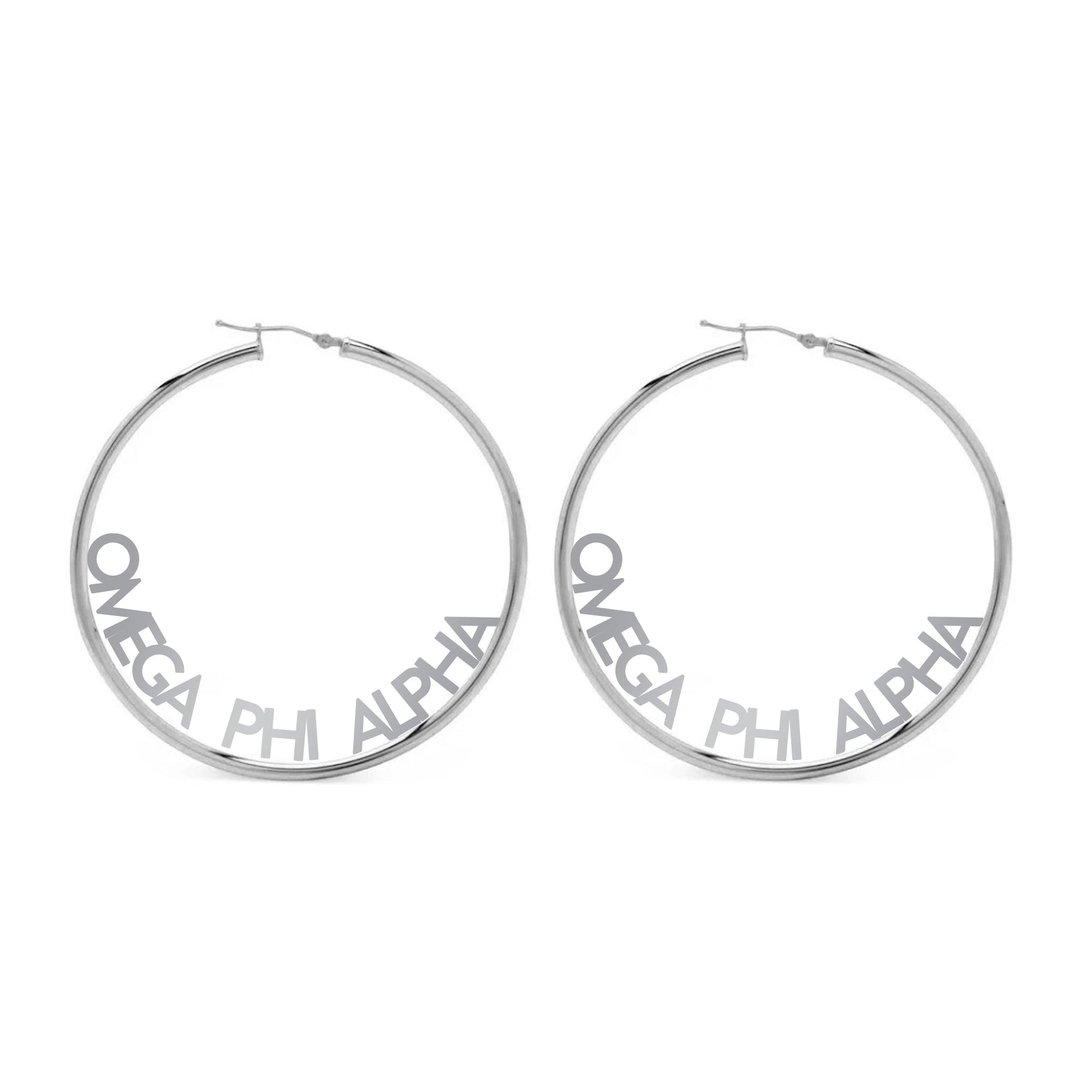Omega Phi Alpha Silver Hoop Earrings- Name Design