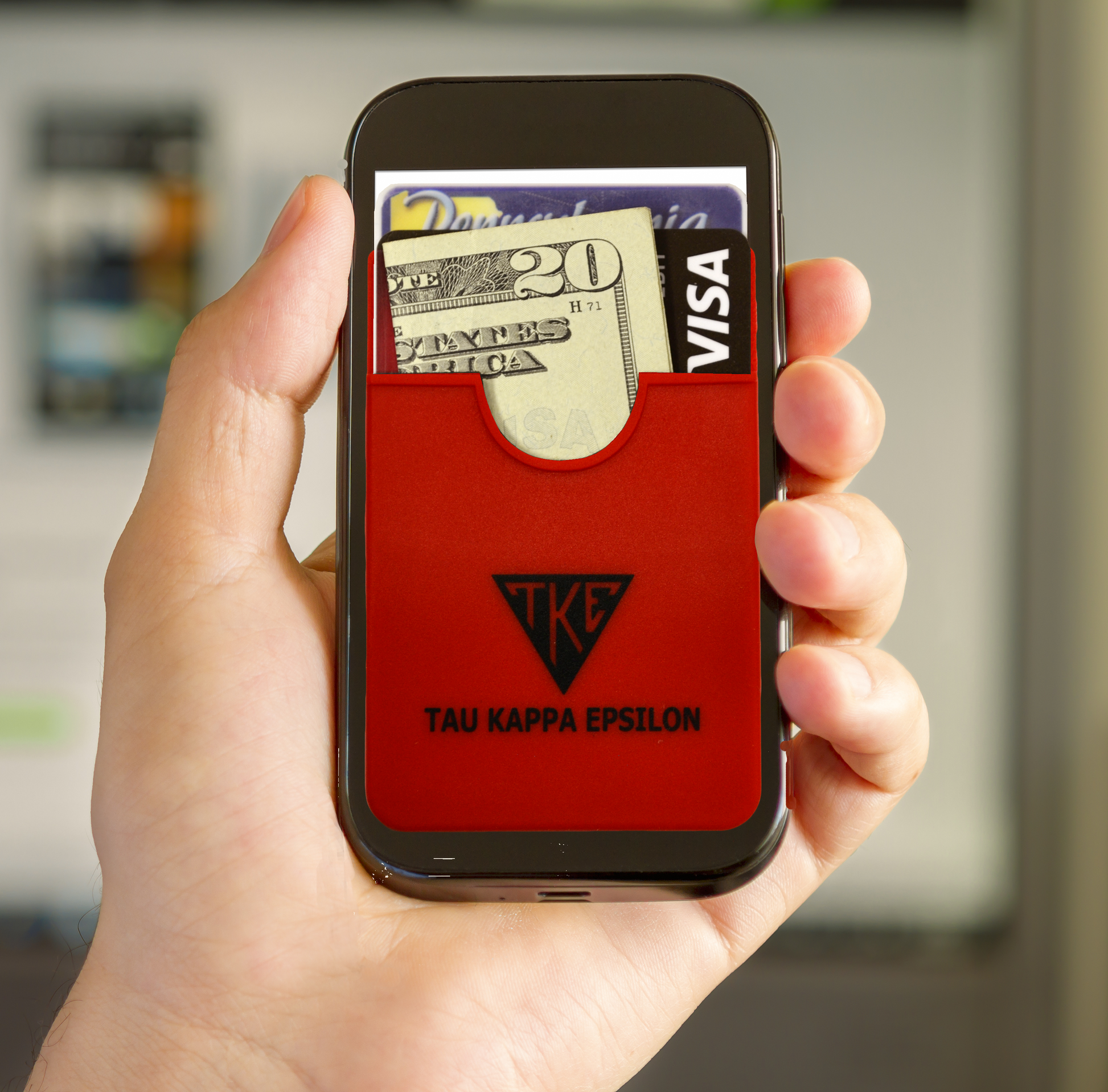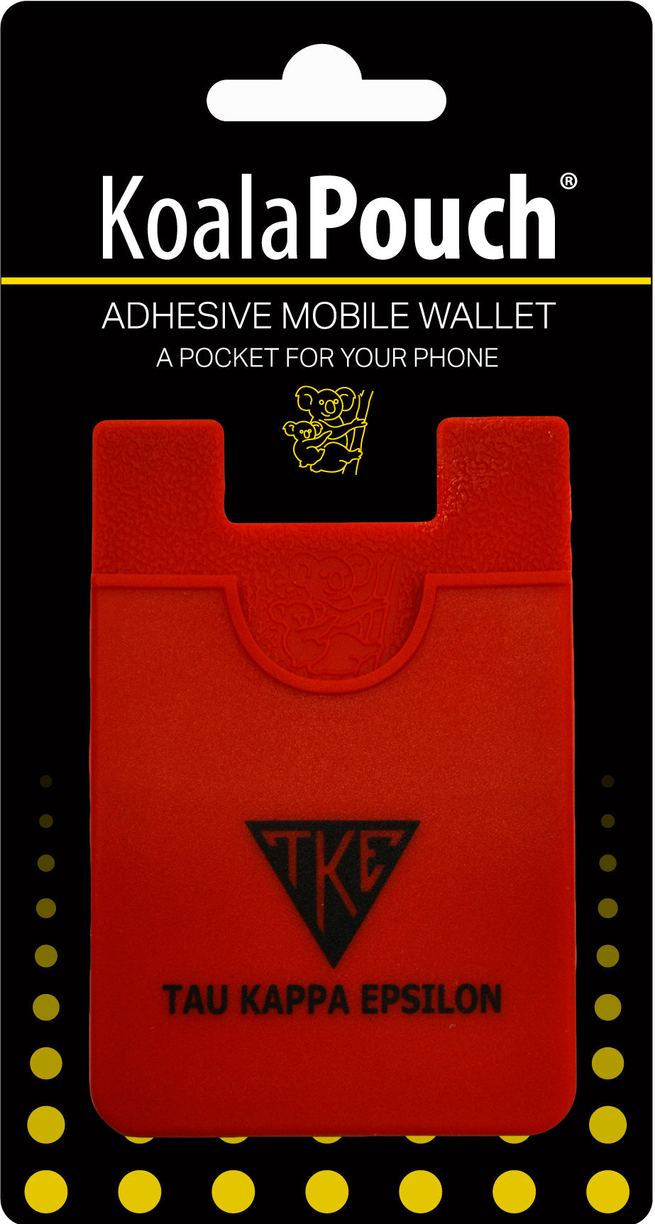 Show your fraternity pride with the Koala Pouch, adhesive cell phone wallet, the perfect solution for the multitasker on the go! Keep all of your valuables safe and secure in one place while reducing the amount of items you routinely carry. The Koala Pouch will securely hold up to 3 cards at a time and helps you with gripping your device as well.