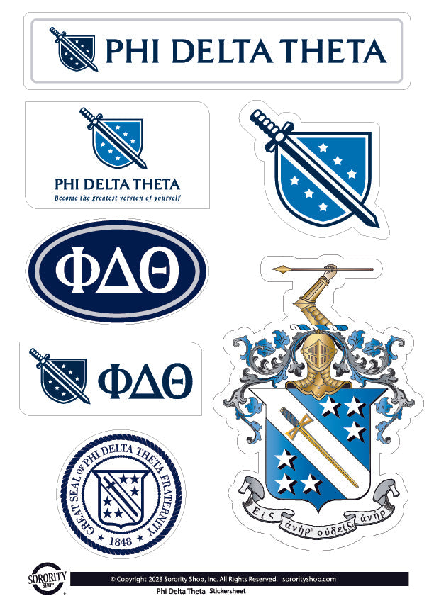Phi Delta Theta Fraternity Sticker Sheet- Brand Focus