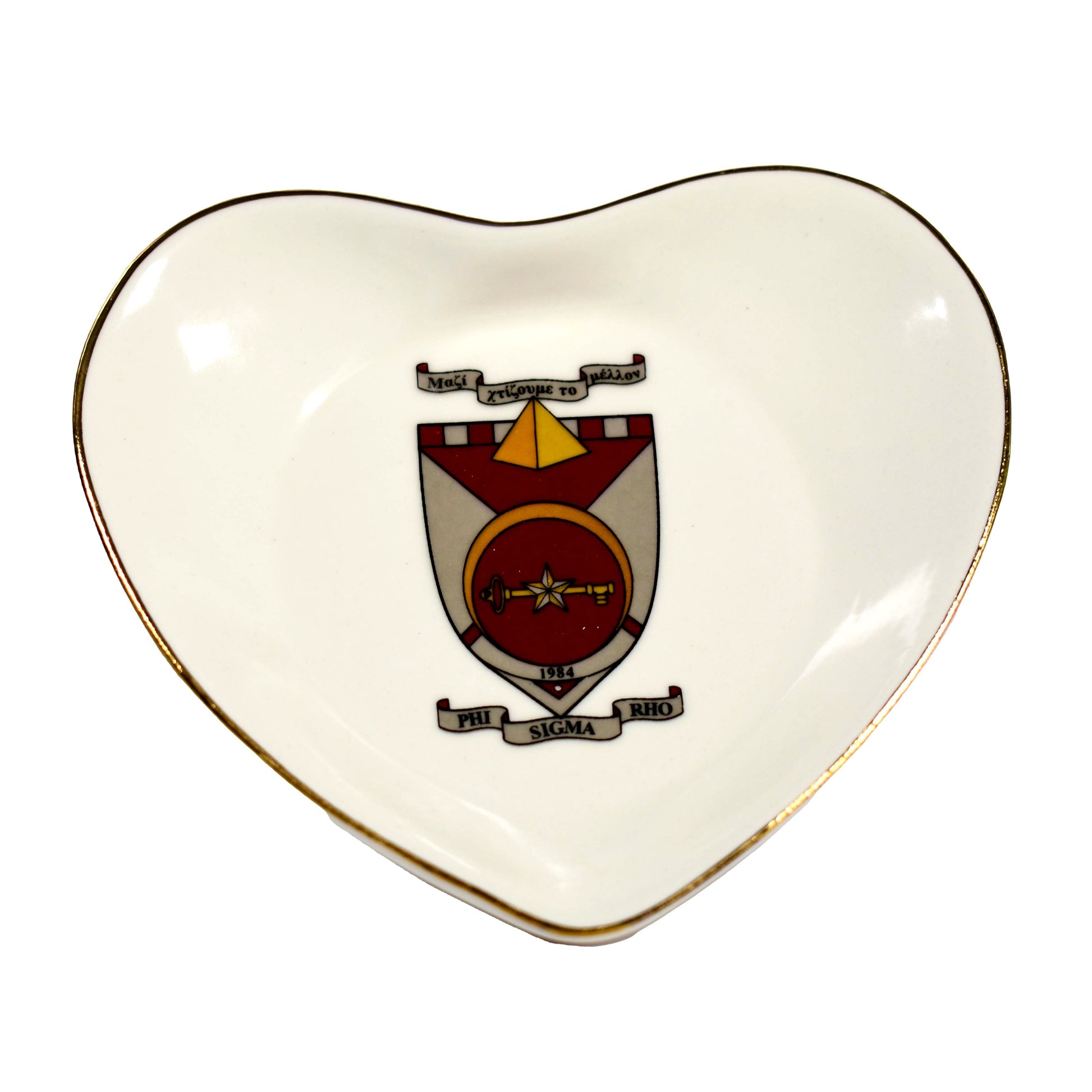 Our Phi Sigma Rho ceramic ring dish is the definition of chic with its high gloss finish and sorority name, heart and edge in gold. Great for rings, jewelry, keys or trinkets. Perfect for home or office!