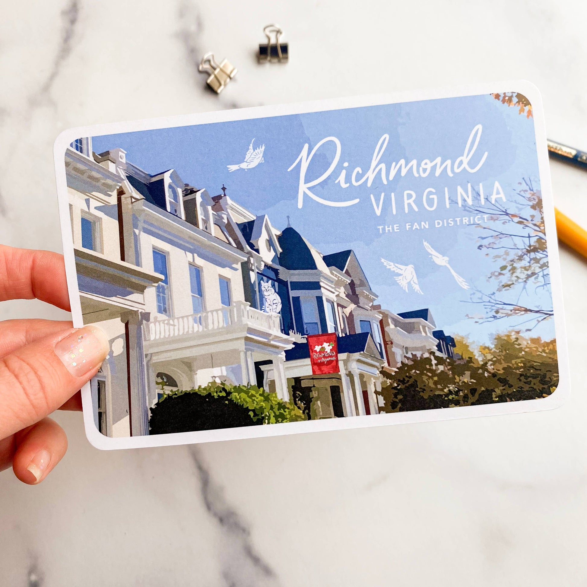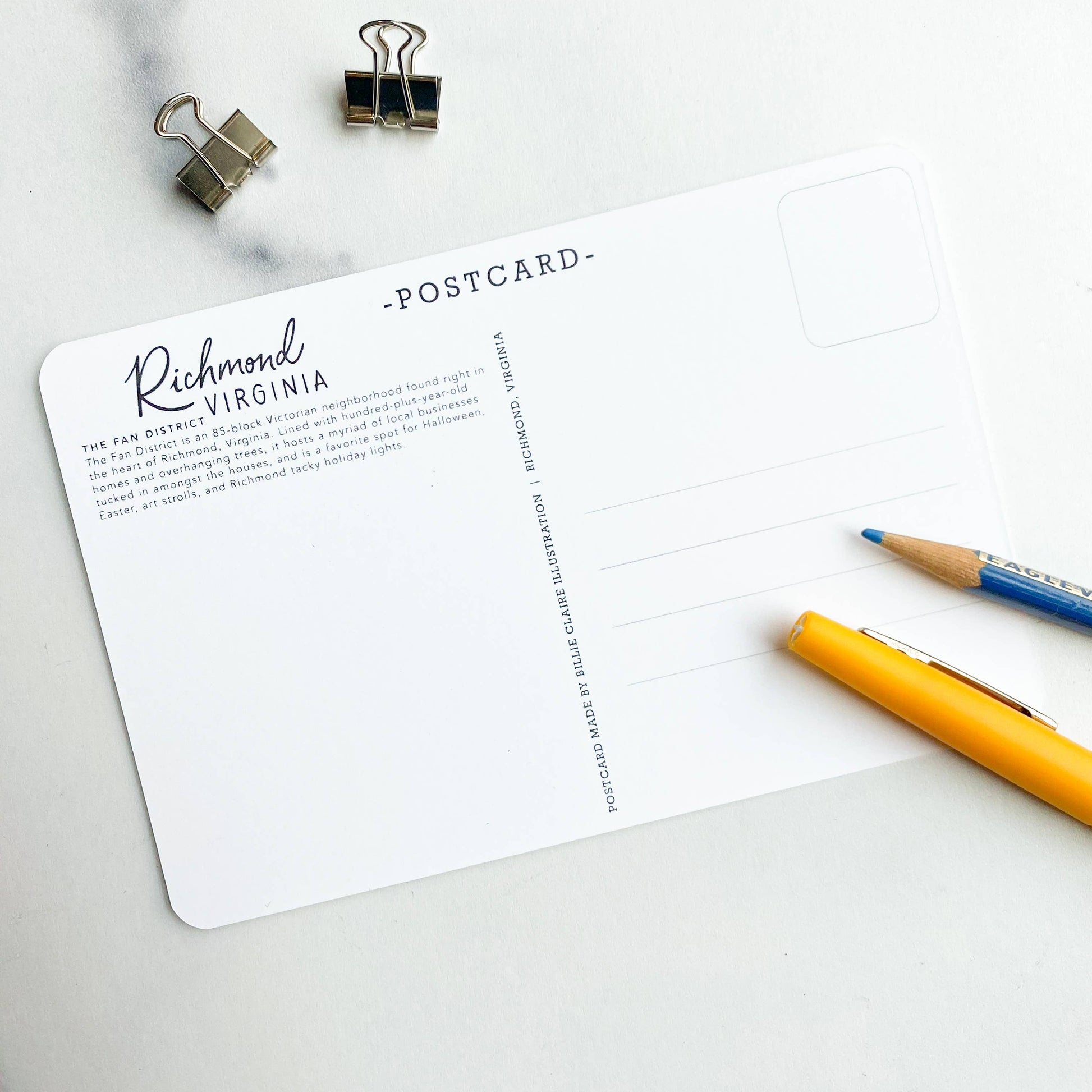 Postcard // Richmond, Virginia - The Fan District This 4x6 postcard is printed on a thick 18pt uncoated coverstock, perfect for any pen and durable enough to withstand the post.