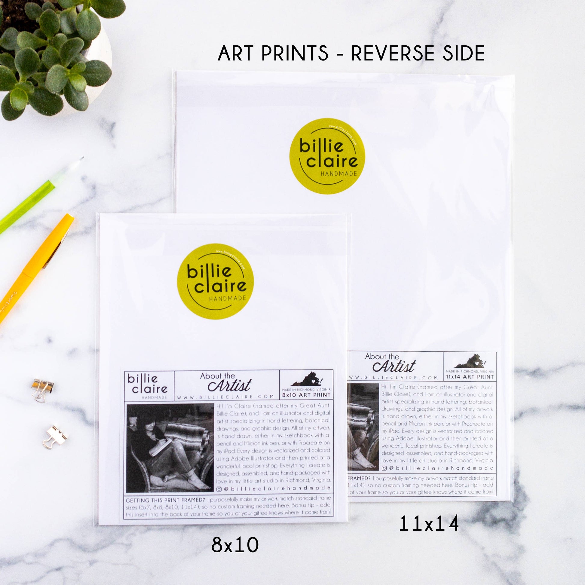 Each art print is professionally printed on 110# silk coated cover stock, achieving vibrant and well-saturated colors. Prints are packaged with a 1/16” backing board in a clear plastic art sleeve and include an info insert in the back with details about the artist and print size. All Billie Claire wholesale prints arrive unframed, but our print sizes match standard US frame sizes, so there is no custom framing needed.