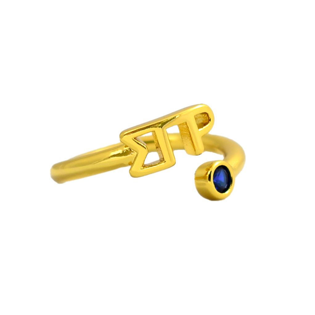 Sigma Gamma Rho Ring- Gold Plated with Greek Letters and CZ Gemstone