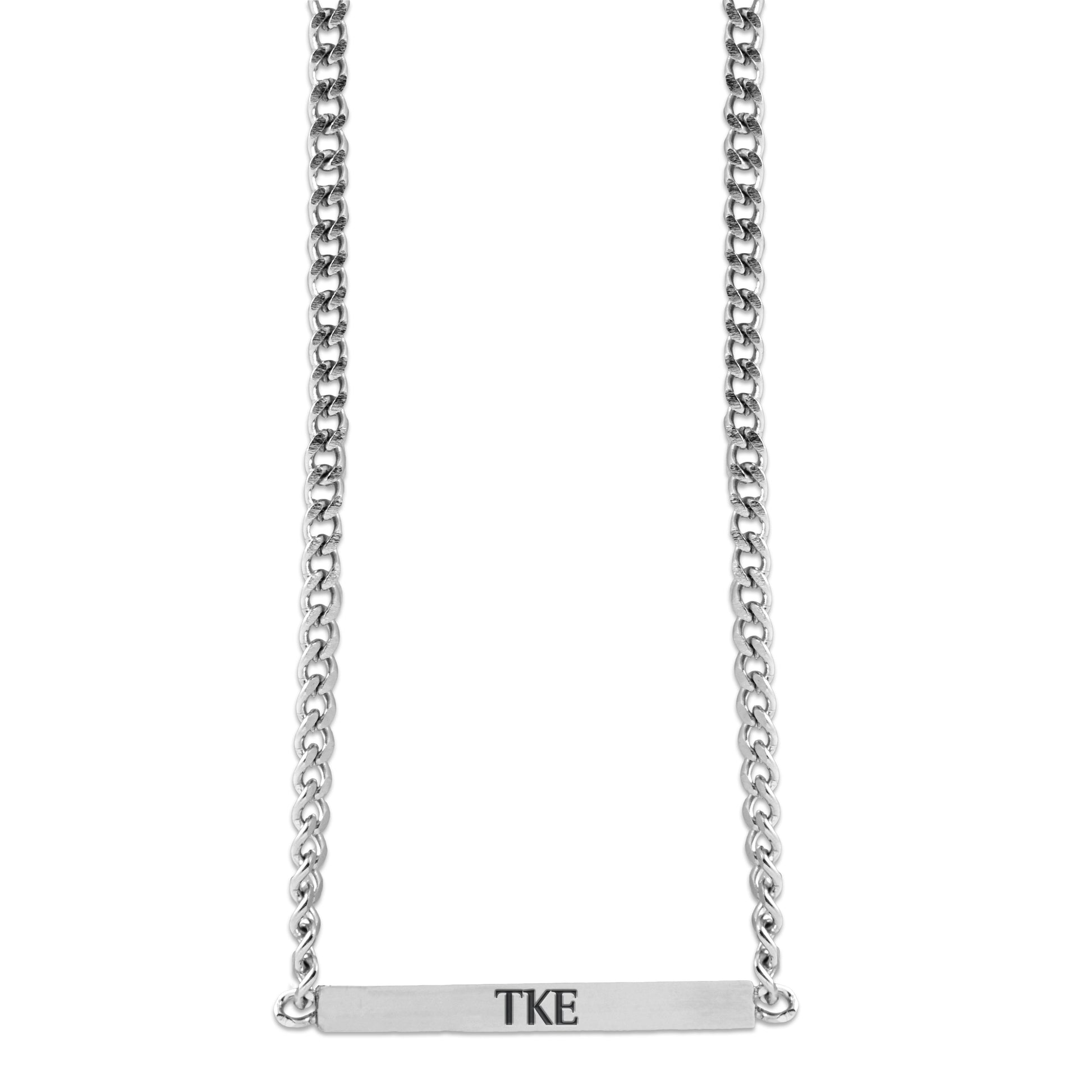STAINLESS STEEL QUALITY CONSTRUCTION – The stainless steel chain necklace is 18" (with a 2" extension) and securely attaches to the 1 ½” x 3/16” steel bar pendant featuring the engraved fraternity letters. Results in an eye-catching look!