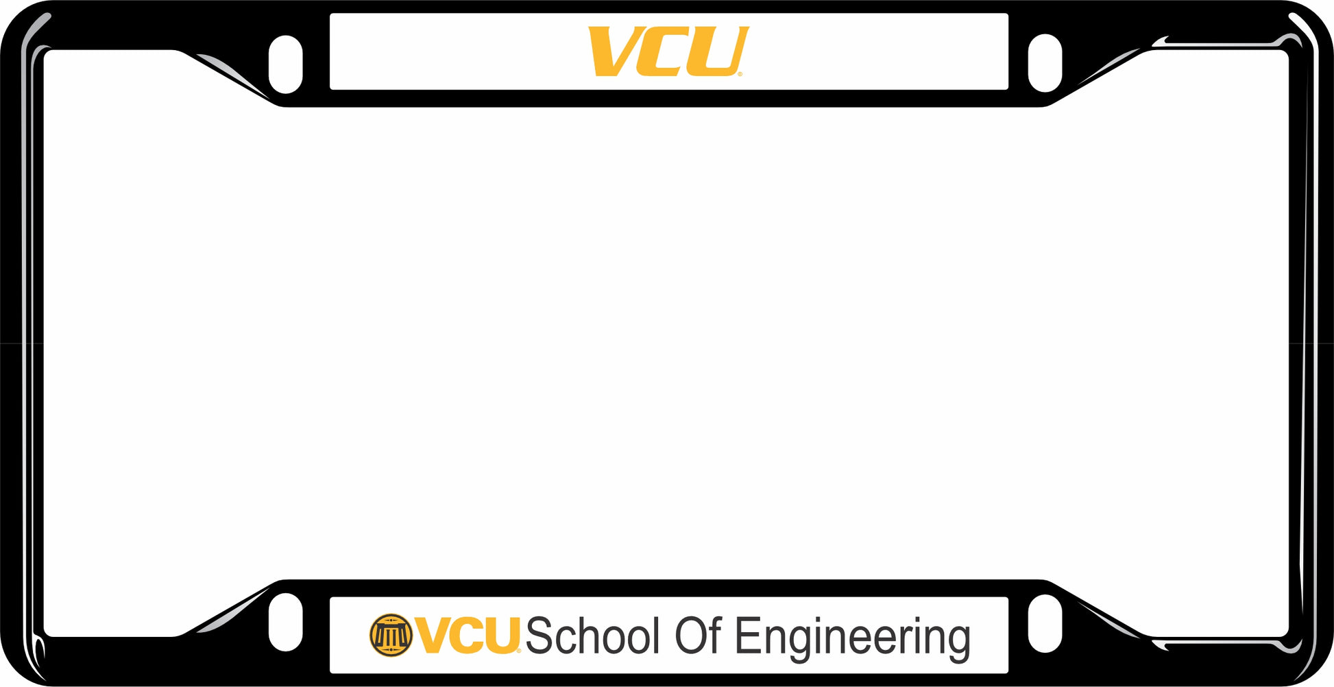 Show your VCU Engineering pride with this sleek black metal license plate frame. Crafted for durability and a professional look, it fits standard plates securely while adding a bold, refined touch to your vehicle. Ideal for alumni, students, and faculty who want to showcase their connection to VCU Engineering with understated elegance.