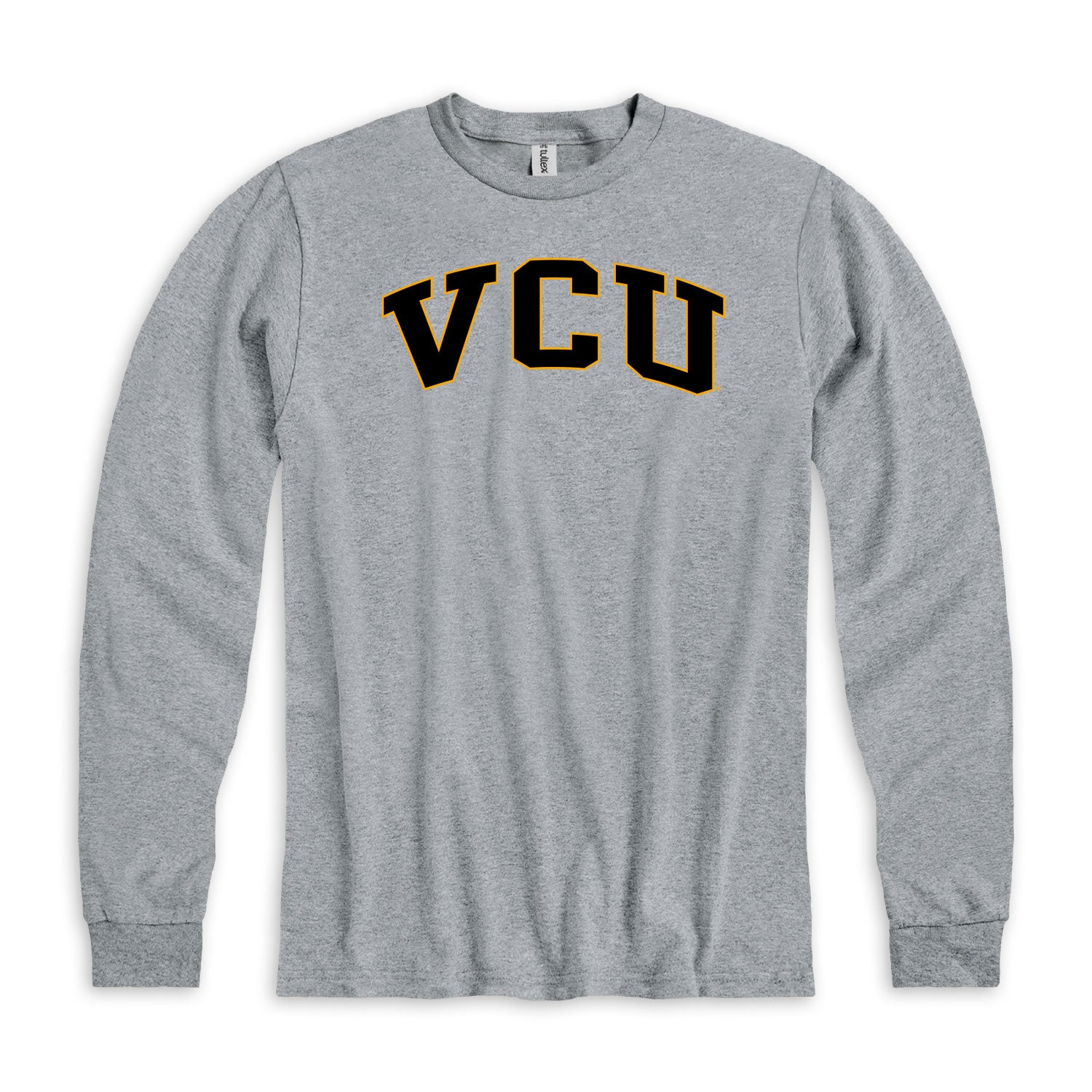 Show off your team pride in this VCU Grey Bold Arch Long Sleeve T Shirt! This Virginia Commonwealth University Long Sleeve Tee features a screen printed "VCU" wordmark. Make sure everyone knows you root for the Rams with this Grey VCU T Shirt. Go Rams!
