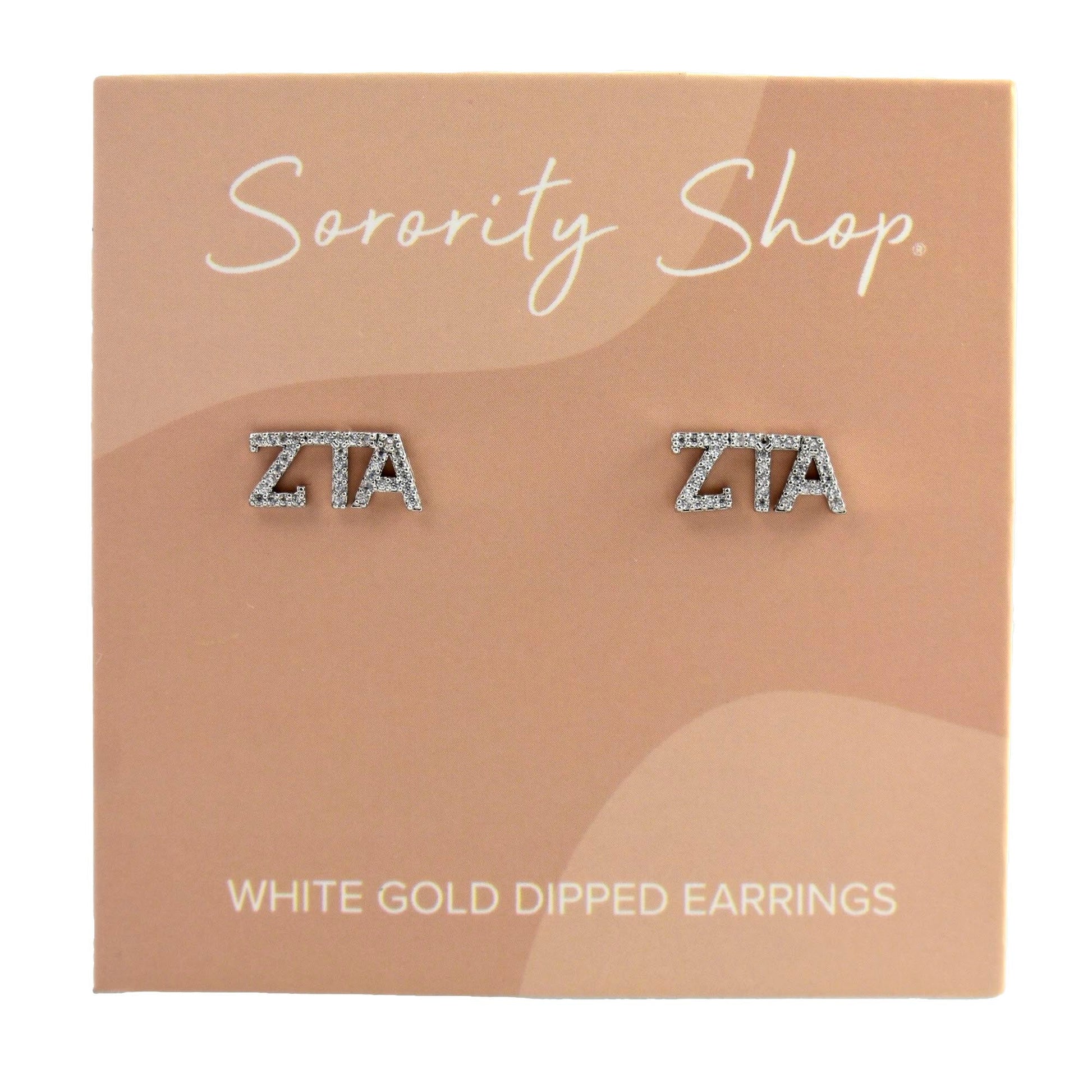 Zeta Tau Alpha White Gold Plated Stud Earrings